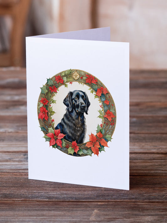Flat-Coated Retriever Christmas Flowers Greeting Cards Pack of 8