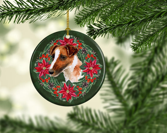 Smooth Fox Terrier Poinsetta Wreath Ceramic Ornament