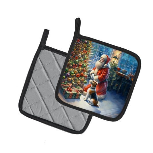 Fox Terrier and Santa Claus Pair of Pot Holders