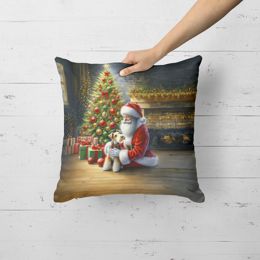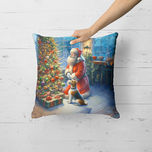 Fox Terrier and Santa Claus Throw Pillow