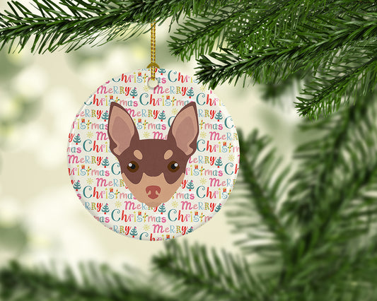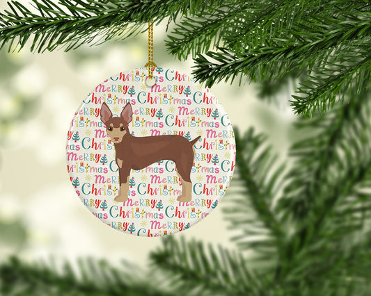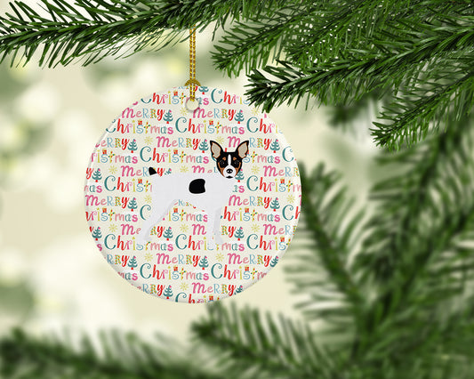 Toy Fox Terrier Merry Christmas Ceramic Ornament