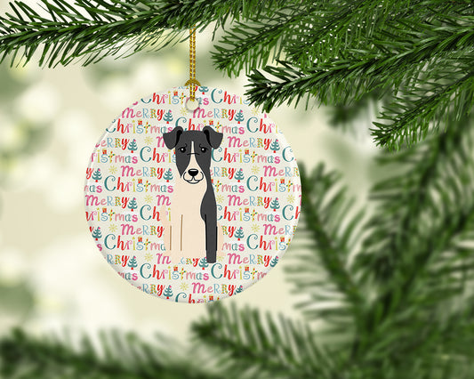 Merry Christmas Fox Terrier Ceramic Ornament