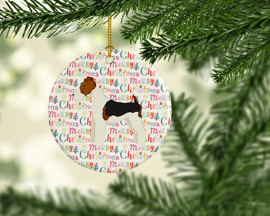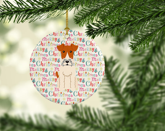 Merry Christmas Wire Fox Terrier Ceramic Ornament