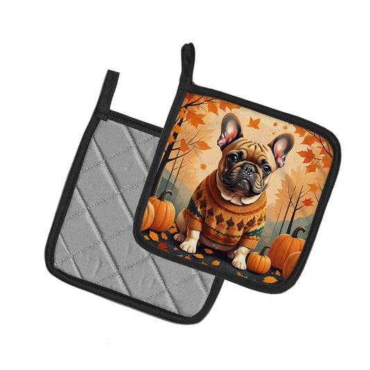 Fawn French Bulldog Christmas Pair of Pot Holders