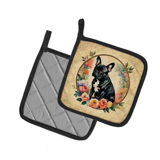 French Bulldog Christmas Flowers Pair of Pot Holders
