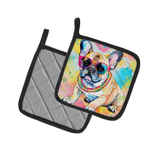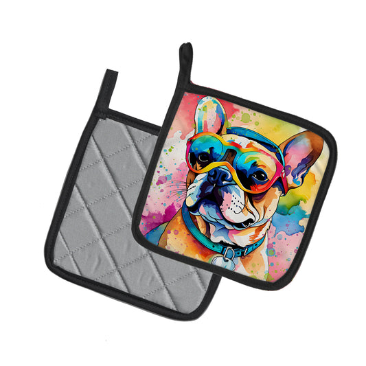 French Bulldog Hippie Dawg Pair of Pot Holders