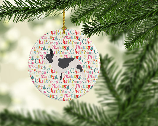 Merry Christmas French Bulldog Piebald Ceramic Ornament