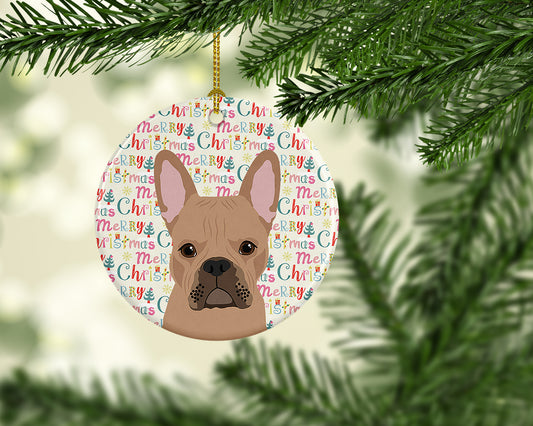 Merry Christmas French Bulldog Brown Ceramic Ornament