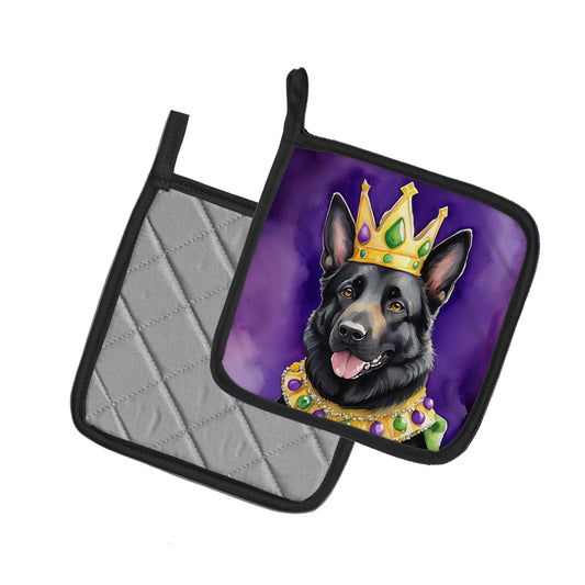 Black German Shepherd King of Mardi Gras Pair of Pot Holders