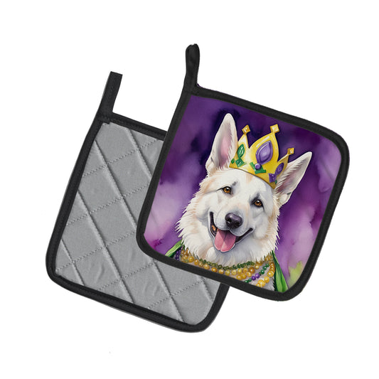 White German Shepherd King of Mardi Gras Pair of Pot Holders