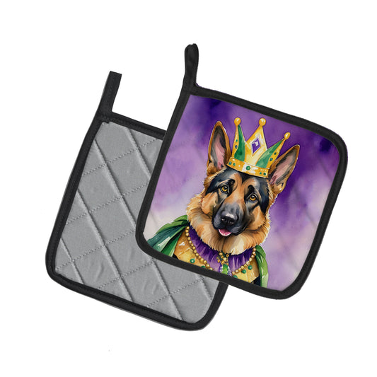 German Shepherd King of Mardi Gras Pair of Pot Holders