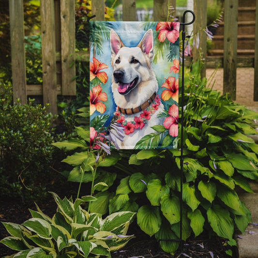White German Shepherd Luau Garden Flag