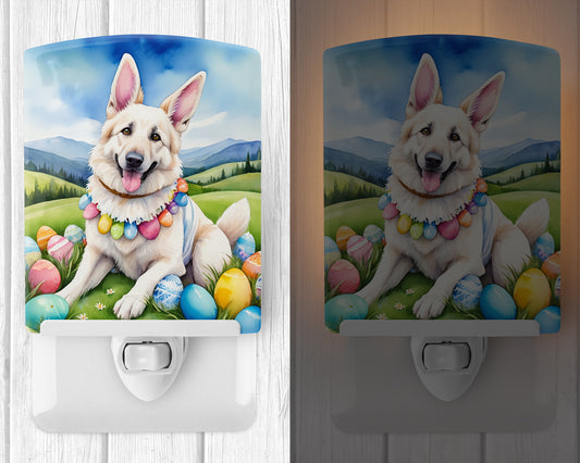 White German Shepherd Easter Egg Hunt Ceramic Night Light