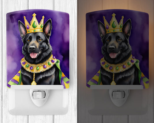 Black German Shepherd King of Mardi Gras Ceramic Night Light