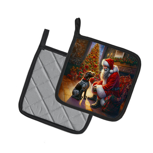 German Wirehaired Pointer and Santa Claus Pair of Pot Holders