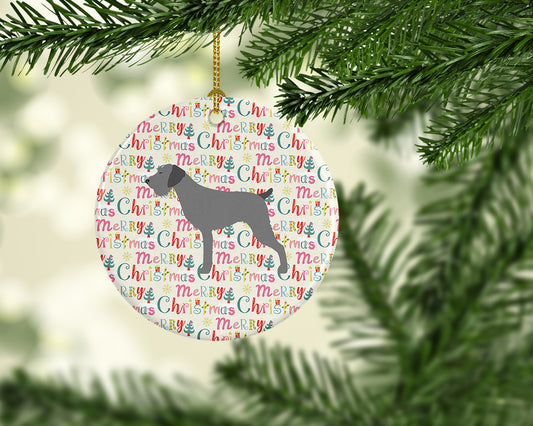 German Wirehaired Pointer Merry Christmas Ceramic Ornament