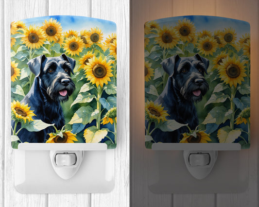 Giant Schnauzer in Sunflowers Ceramic Night Light