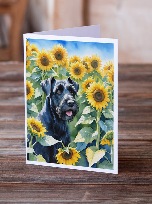 Giant Schnauzer in Sunflowers Greeting Cards Pack of 8