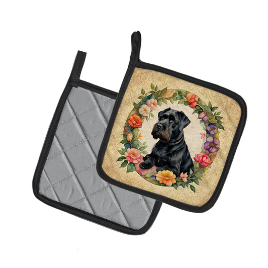Giant Schnauzer and Flowers Pair of Pot Holders
