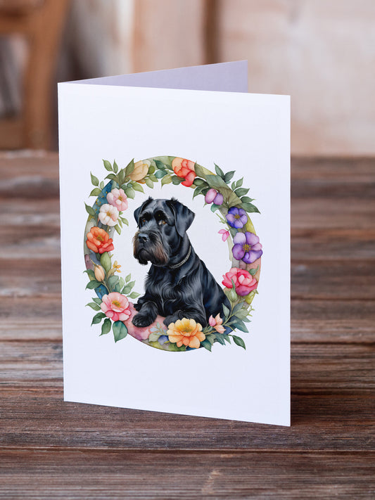 Giant Schnauzer and Flowers Greeting Cards and Envelopes Pack of 8