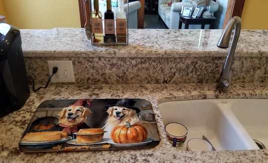 Golden Retriever Fall Kitchen Pumpkins Dish Drying Mat