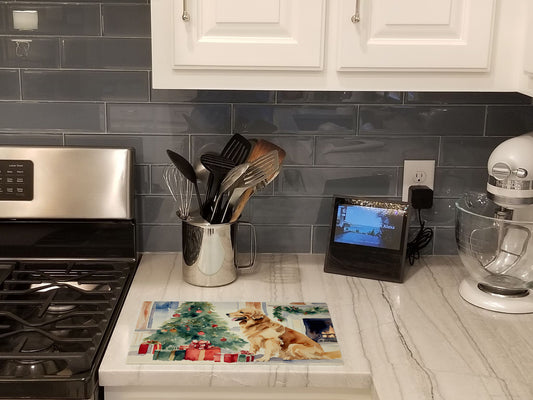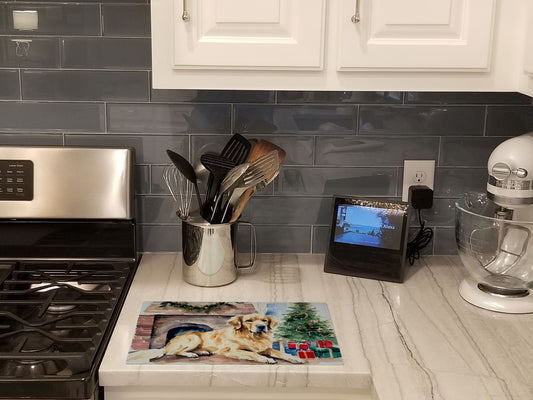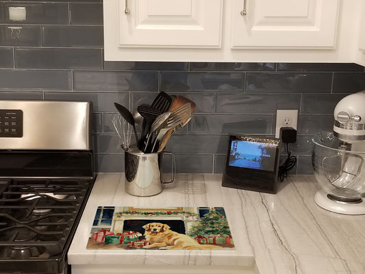 Golden Retriever Cozy Christmas Glass Cutting Board