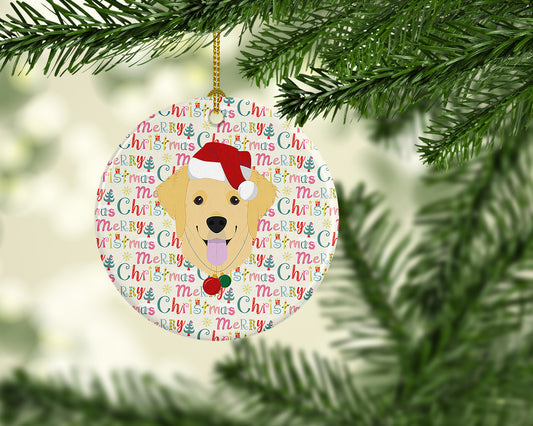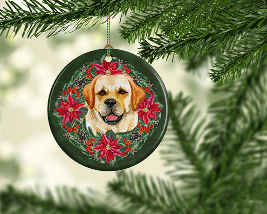 Golden Retriever Poinsetta Wreath Ceramic Ornament