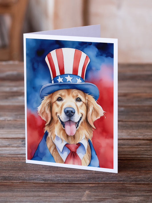 Golden Retriever Patriotic American Greeting Cards Pack of 8