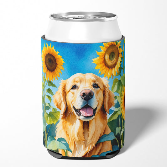 Golden Retriever in Sunflowers Can or Bottle Hugger