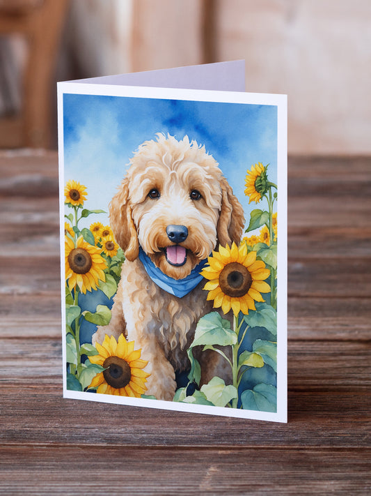 Goldendoodle in Sunflowers Greeting Cards Pack of 8