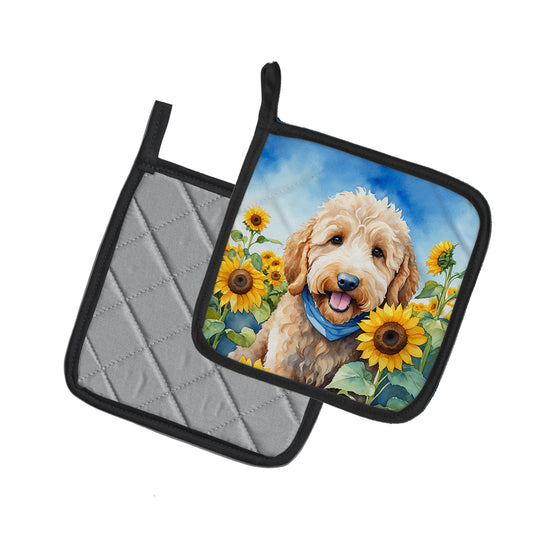 Goldendoodle in Sunflowers Pair of Pot Holders