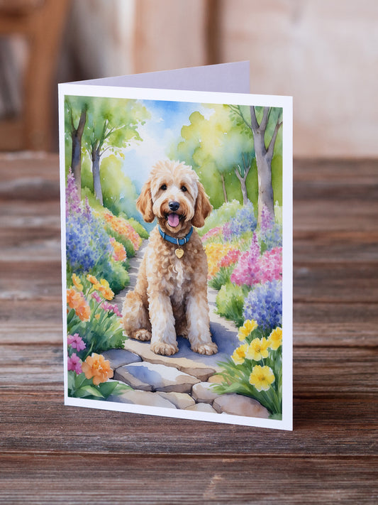 Goldendoodle Spring Path Greeting Cards Pack of 8