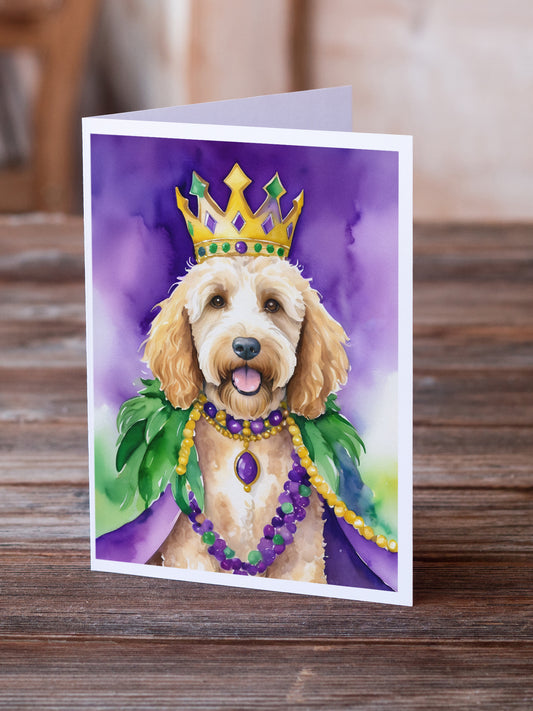 Goldendoodle King of Mardi Gras Greeting Cards Pack of 8