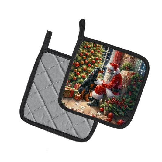 Gordon Setter and Santa Claus Pair of Pot Holders