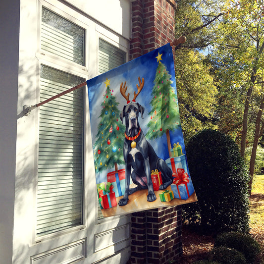 Black Great Dane Christmas Reindeer House Flag