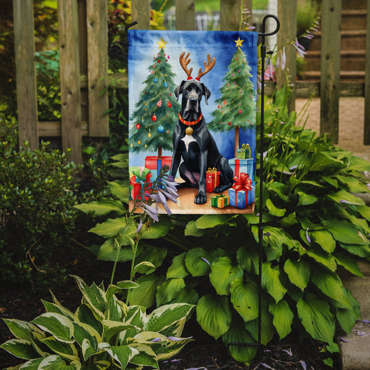Black Great Dane Christmas Reindeer Garden Flag
