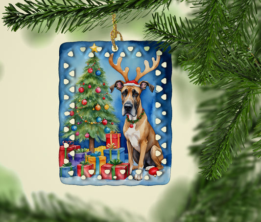 Great Dane Christmas Reindeer Porcelain Ornament