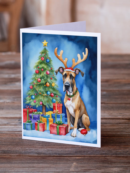 Great Dane Christmas Reindeer Greeting Cards Pack of 8