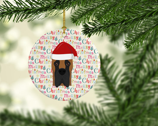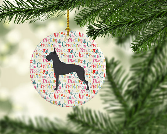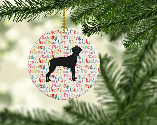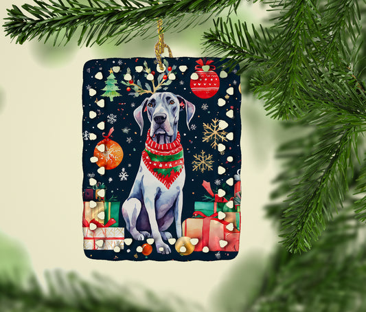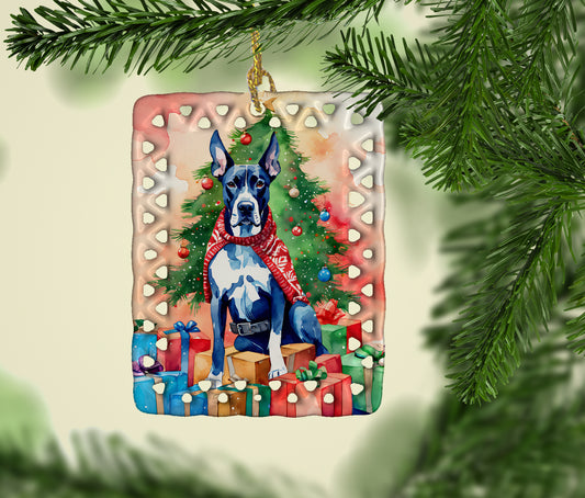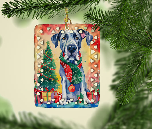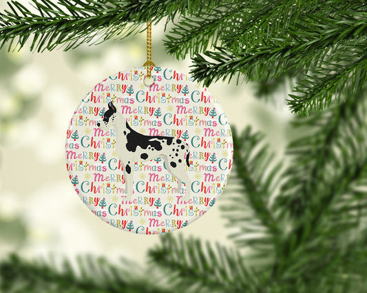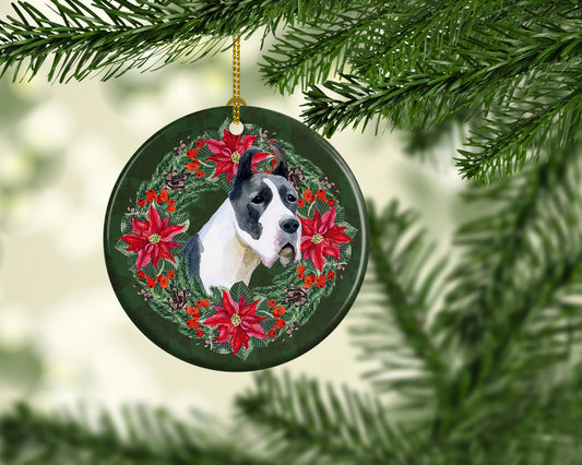 Harlequin Great Dane Poinsetta Wreath Ceramic Ornament