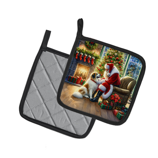 Great Pyrenees and Santa Claus Pair of Pot Holders