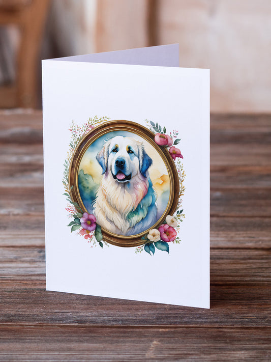 Great Pyrenees and Flowers Greeting Cards and Envelopes Pack of 8