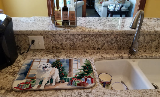 Great Pyrenees Cozy Christmas Dish Drying Mat