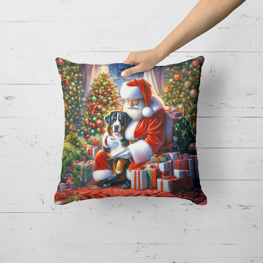 Greater Swiss Mountain Dog and Santa Claus Throw Pillow