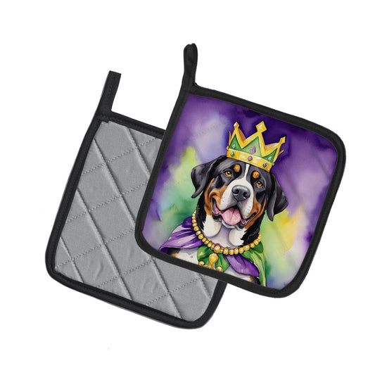 Greater Swiss Mountain Dog King of Mardi Gras Pair of Pot Holders