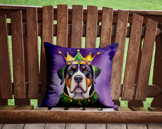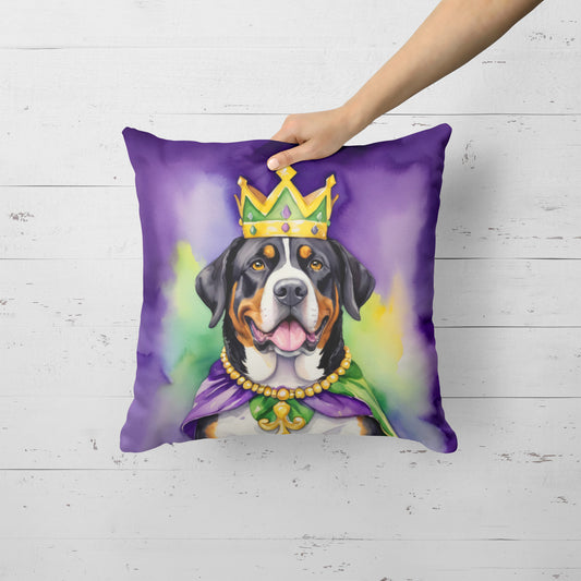 Greater Swiss Mountain Dog King of Mardi Gras Throw Pillow