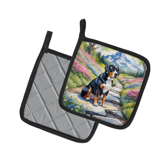 Greater Swiss Mountain Dog Spring Path Pair of Pot Holders