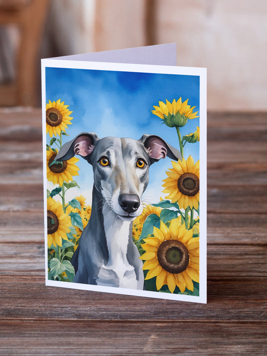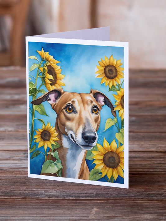 Greyhound in Sunflowers Greeting Cards Pack of 8