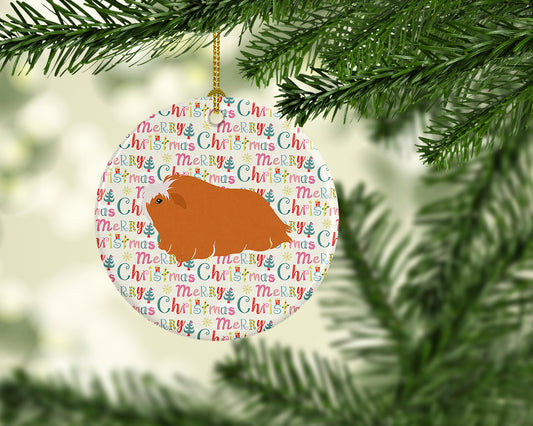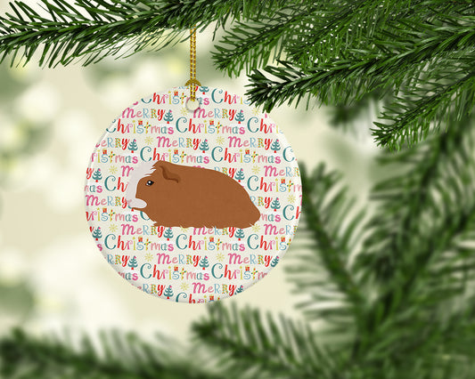 Abyssinian Guinea Pig Merry Christmas Ceramic Ornament