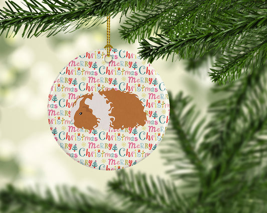 Texel Guinea Pig Merry Christmas Ceramic Ornament