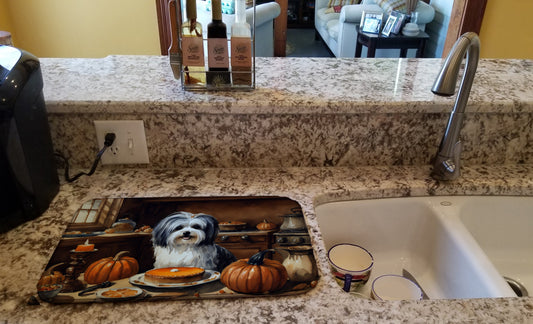 Havanese Fall Kitchen Pumpkins Dish Drying Mat